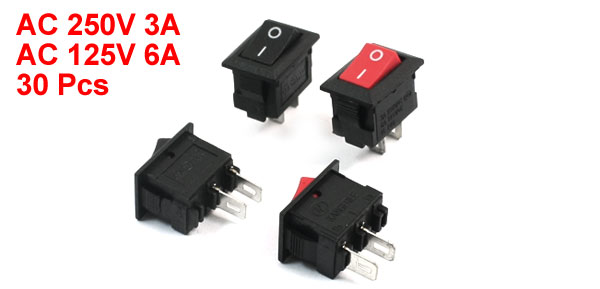 AC 125V 6AOverall Size 15 x 10.5 x 19.5mm/0.6" x 0.4"x 0.8"(L*W*H) Mounting Hole Size 12 x 9mm / 0.47" x 0.35"(L*W) Color Black, White, Silver Tone Material Plastic, Metal Net Weight 42g Package Content 30 x Rocker Switch - Reviews
