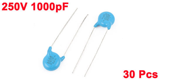 30Pcs Blue High Voltage Ceramic Disc Capacitor 250V 1000pF 20% Tolerance