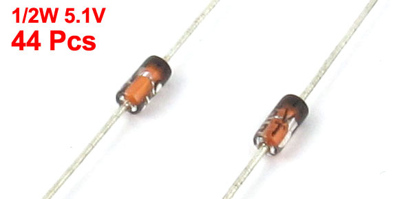 Product Name Zener Diode Model BZX55C5V1 Power Dissipation 1/2W Forward Voltage/Current(Ta=25C) 1.5V/200mA Reverse Voltage/Current(Ta=25C) 1V/0.1uA Nominal Zener Voltage 5.1V Zener Current 5mA Operating Temperature -65 to +175C Overall Size 2 x 60mm/0.08" x 2.4"(Max.D*L) Color As Picture Show Weight 6g Package Content 44 x Zener Diode - Reviews