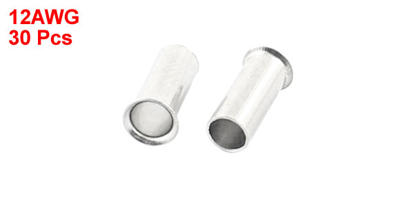 30Pcs EN4009 Model Tin Coated Tube Bare Terminal 12AWG Electric Wire Connector