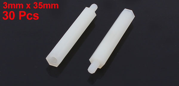 30Pcs M3 35mm+6mm Female Male Thread Nylon Hex Stand-Off PCB Pillar Screw Spacer