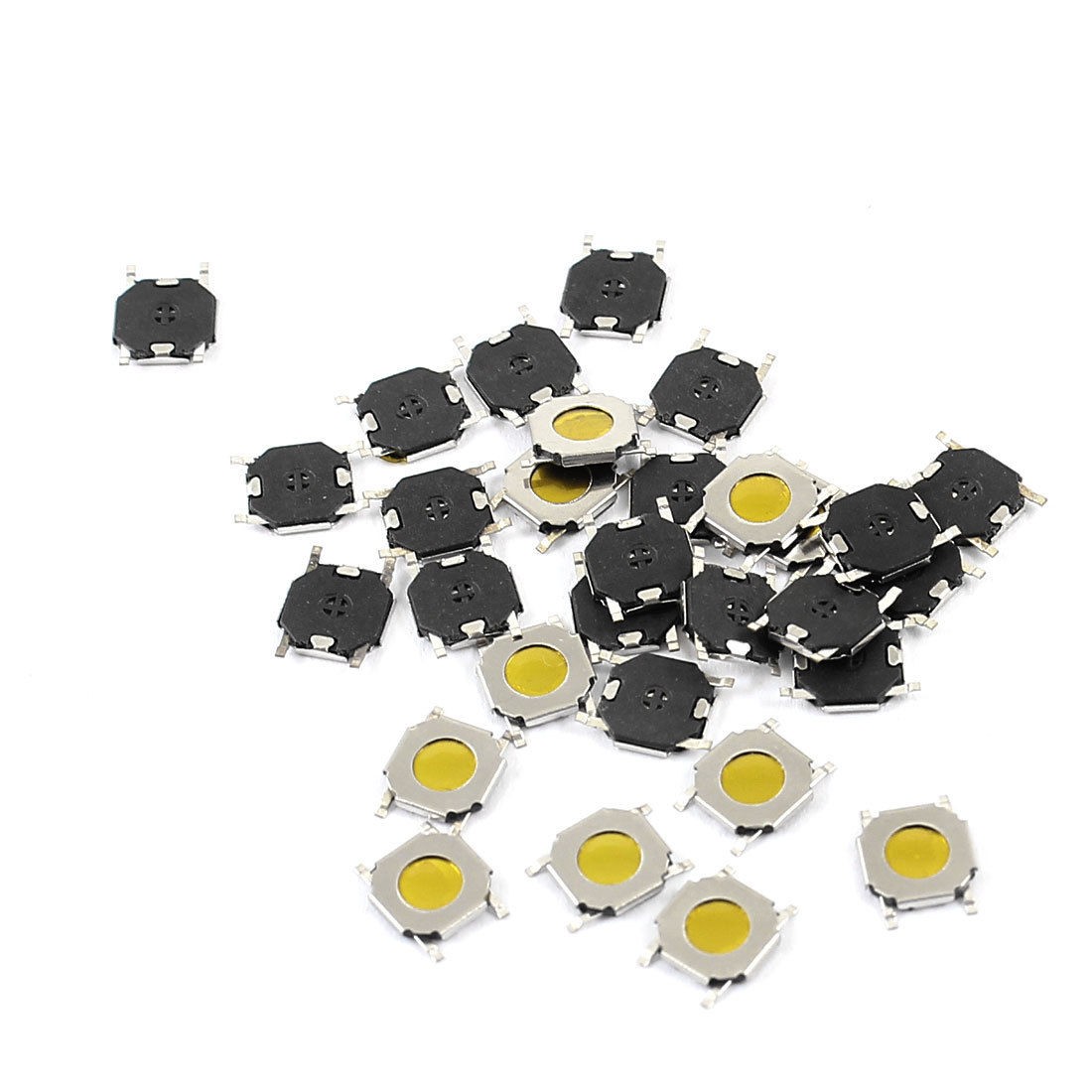 Product Name Tact Switch Type SPST Action Type Momentary Pin Number 4 Dimension 4 x 4 x 1.0mm / 0.16" x 0.16" x 0.04"(L*W*H) Button Dia. 3mm / 0.12" Material Plastic, Metal, Electric Parts Color Yellow, Silver Tone, Black Net Weight 3g Package Content 30 x Tact Switch - Reviews