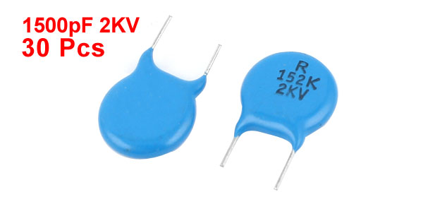 Product Name Ceramic Disc Capacitors Capacitance 1500pF Voltage 2KV Tolerance ±10% Lead Spacing 8mm/0.32" Total Size 12 x 3mm / 0.37" x 0.12" (D*T) Weight 31g Main Color Blue, Silver Package Content 30 Pcs x Ceramic Disc Capacitors - Reviews