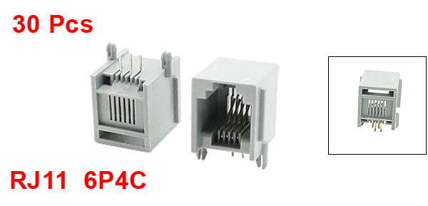 Product Name RJ11 PCB Jack Feature RJ11 6P4C Material Plastic, Metal Color Gray Total Pin Number 4 Pin Type Round Pin,PCB Mounting Pin Angle & Location Right Angle Pins(Horizontal Mounting) Each Size (Approx.) 15 x 12 x 14.5mm / 0.6" x 0.5" x 0.6" (L*W*T) Net Weight 58g Package Content 30 x RJ11 PCB Jack - Reviews