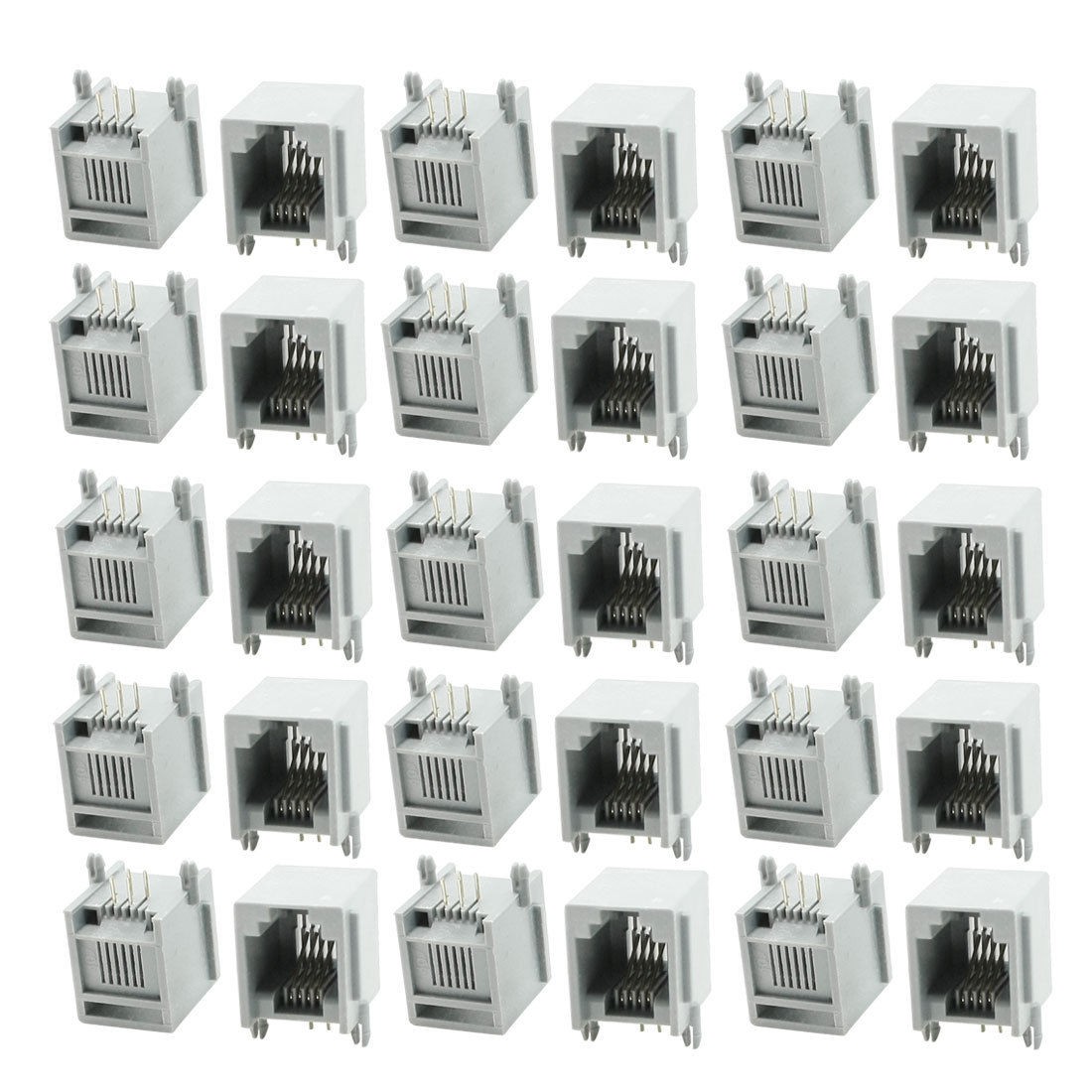 30Pcs RJ11 6P4C PCB Jacks Horizontal Connectors 0.6" Length for Ethernet