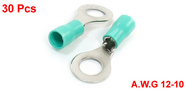 30PCS RV5.5-8 Green PVC Sleeve Pre Insulated Ring Terminals Connector AWG12-10