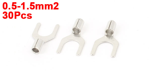 30Pcs SNB1.25-5S Non-Insulated Spade Cable Fork Terminals Connector AWG22-16