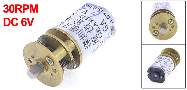 Product Name DC Geared Motor Rated Voltage DC 6V Output Speed 30RPM Shaft Diameter 3mm/ 0.24" Gearbox Part Size 14 x 9mm/ 0.6" x 0.35"(D*L) Motor Part Size 12 x 15mm/ 0.5" x 0.6"(D*L) Total Length(Approx) 30mm/ 1.2" Material Metal, Electronic Parts Color As Picture Shown Weight 13g Package Content 1 x DC Geared Motor - Reviews