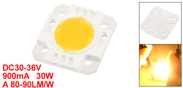 Product Name COB LED Lamp Beads Rated Voltage DC30-36V Luminous Flux 80-100LM/W Color Temperature 2800-3000K Power 30W Current 900mA Light Color Warm White Material Aluminum Color Silver Tone, Orange Size 40 x 35mm/ 1.6" x 1.4" (L*W) Luminous Surface 30 x 30mm/ 1.2" x 1.2"(L*W) Weight 19g Package Content 1 x COB LED Lamp Beads - Reviews