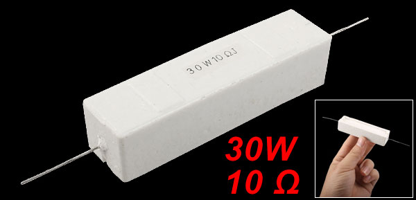 Product Name Cement Resistor Body Material Ceramic, Cement Power 30W Resistance 10Ω Tolerance ±5% Body Size (Approx.) 74 x 18 x 17mm / 2.9" x 0.7" x 0.7" (L * W * H) Pin Size (Approx.) 28 x 1mm / 1.1" x 0.04"(L*D) Color White Weight 54g Package Content 1 x Cement Resistor - Reviews