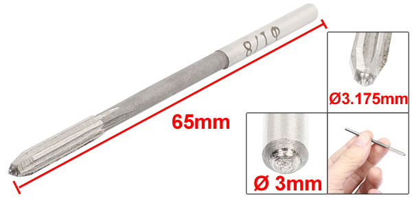 Product Name Straight Shank Chucking Reamer Material HSS Flute Number 6 Cutting Diameter 3.175mm/ 1/8" Cutting Depth 20mm/ 25/32" Shank Diameter 3mm/ 3/25" Total Length 65mm/ 2.6" Color Silver Tone Weight 29g Package Content 1 x Straight Shank Chucking Reamer - Reviews