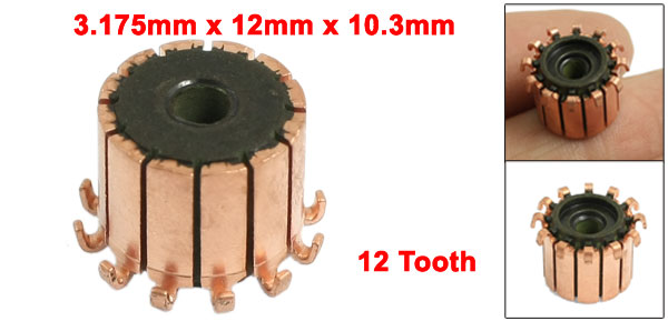 3.175mm Shaft Dimeter 12mm OD 12 Tooth Copper Shell Electric Motor Commutator