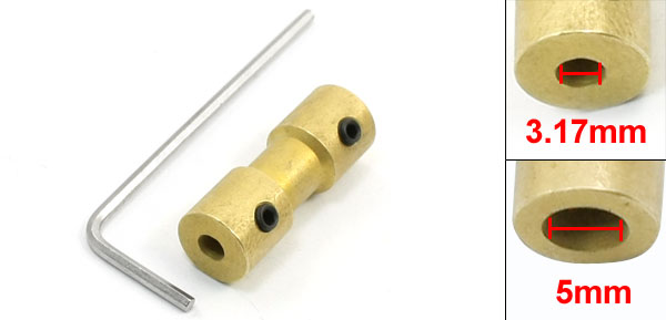 Details3.17mm to 5mm Inner Dia RC Boat Ship Model Motor Coupler Connector  Product Name Motor Coupler Connector Type 3.17mm to 5mm Total Size 2.5 x 0.9cm/1" x 0.35"(L*D) Main Color Gold Tone Material Metal, Plastic Weight 10g Package Content 1 x Motor Coupler Connector Seveal Mount Accessories