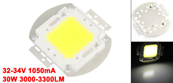 Product Name High Power LED Chip Voltage 32-34V Luminous Flux 3000-3300LM Color Temperature 6000-6500K Power 30W Current 1050mA Integrated Mode 10 in Series and 3 in Parallel Light Color Pure White Material Aluminum Color Silver Tone Size 56 x 40mm/ 2.2" x 1.6"(L*W) Weight 29g Package Content 1 x High Power LED Chip - Reviews