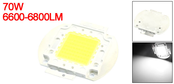 Product Name 70W LED Emitter Model 10G45CY Voltage 32-34V Current 2400mA (2.4A) Luminous Intensity 6600-6800LM Power Consumption 70W Total Size 55 x 52 x 5 mm / 2.1" x 2" x 2" (L*W*T) Emitter Size 27 x 27 mm / 1.1" x 1.1" (L*W) Fixing Hole Dia 3.5 mm / 0.14" Fixing Hole Center Distance 31 mm / 1.2" Emitter Color White Material Electronic Parts Net Weight 29g Package Content 1Pcs x 70W LED Emitter - Reviews
