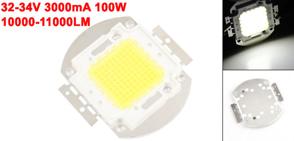Product Name High Power LED Chip Voltage 32-34V Luminous Flux 10000-11000LM Color Temperature 6000-6500K Power 100W Current 3000mA Integrated Mode 10 in Series and 10 in Parallel Light Color Pure White Material Aluminum Color Silver Tone Size 56 x 40mm/ 2.2" x 1.6"(L*W) Weight 29g Package Content 1 x High Power LED Chip - Reviews