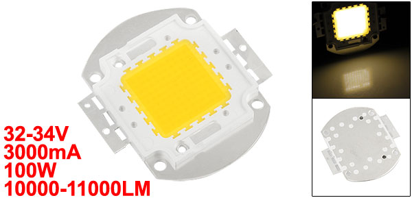Product Name High Power LED Chip Voltage 32-34V Luminous Flux 10000-11000LM Color Temperature 3000-3500K Power 100W Current 3000mA Integrated Mode 10 in Series and 10 in Parallel Light Color Warm White Material Aluminum Color Silver Tone Size 56 x 40mm/ 2.2" x 1.6"(L*W) Weight 29g Package Content 1 x High Power LED Chip - Reviews