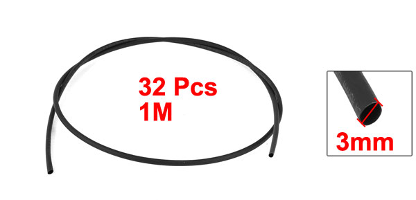 Product Name Heat Shrinkable Tube Material Polyolefin Temperature Level 125°C Flammability VW-1 Diameter 3mm / 0.12" (Before Shrinking) 1.5mm / 0.06" (After Shrinking) Shrink Ratio 2:1 Length (Approx.) 1M / 3Ft Color Black Weight 111g Package Content 32 x Heat Shrinkable Tube - Reviews
