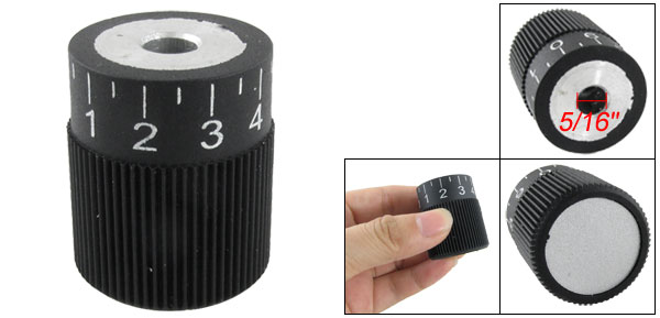 Product Name Knurled Control Knob Material Plastic, Metal Overall Size 32 x 37mm/1.25" x 1.45"(D*H) Hole Diameter 8mm/ 5/16" Color Black, Silver Tone Weight 56g Package Content 1 x Scale Knurled Control Knob - Reviews