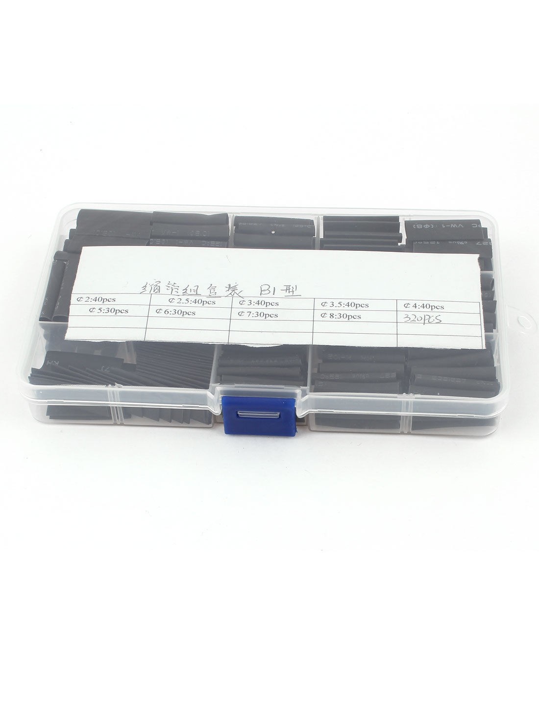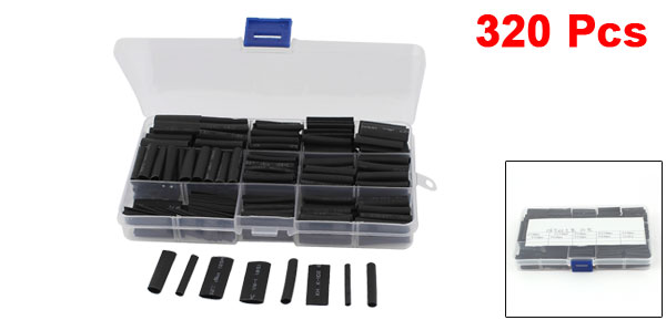 320pcs 9 Size Black Heat Shrink Tube Sleeving Wrap Wire Kit 2:1
