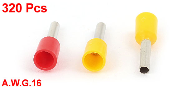 320pcs E1508 AWG16 Yellow Red Sleeve Insulated Pin Terminal Connectors