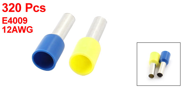 320PCS E4009 Yellow Blue Tube Head Insulated Terminals Connector 12AWG