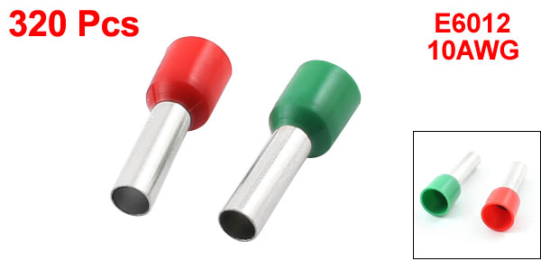 320Pcs E6012 10AWG Green Red Tube Type Insulated Cable Ends Connectors