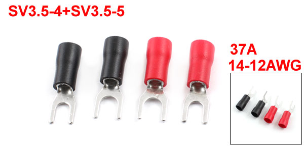 SV3.5-5: 8.03mmHole Dia 6mm/0.24" Total Length 1'' Max. Current 37A Material PVC Plastic, Metal Color Black, Red Weight 287g Package Content 320 Pcs (±2%) x Fork Terminal - Reviews