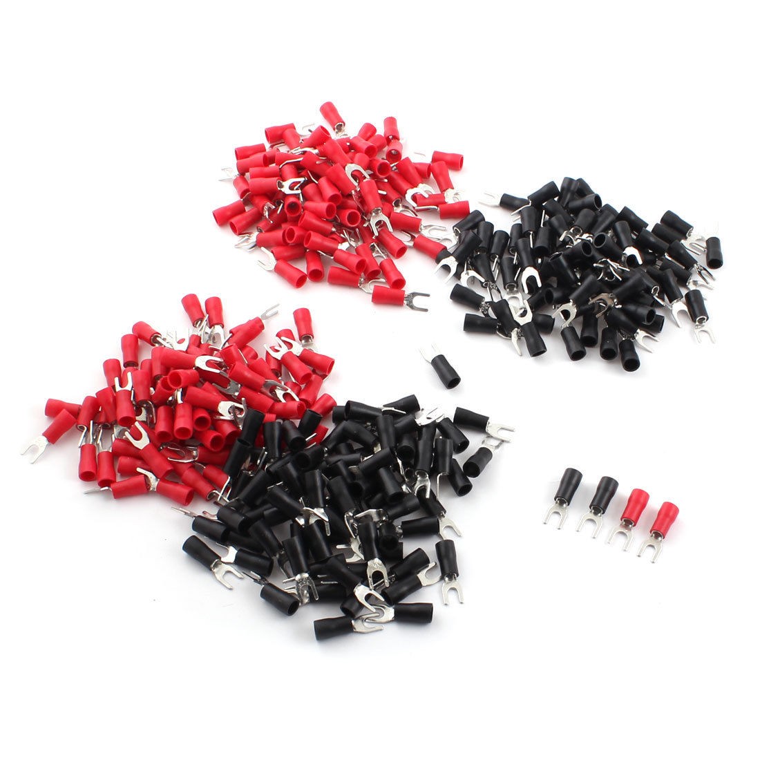 320Pcs SV3.5-4 SV3.5-5 Black Red Pre Insulated Fork Terminal 6mm Dia 14-12AWG