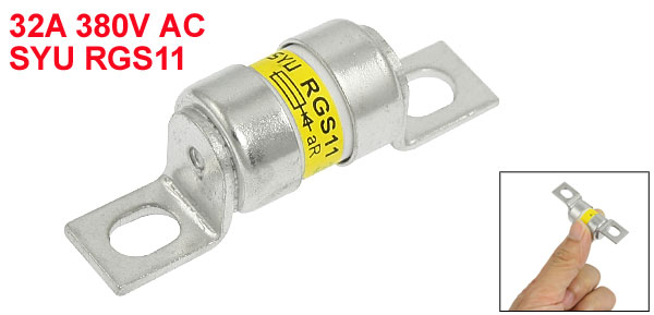 Product Name Bolt Connected Fuse Model SYU RGS11 Type Fast Blow Material Metal Rated Voltage 380V Rated Current 32A Main Color Silver Tone Total Size 56 x 17mm / 2.2" x 0.67" (L*D) Hole Size 8.2 x5.8mm / 0.3"x 0.2" (L*W) Weight 24g Package Content 1 x Bolt Connected Fuse - Reviews