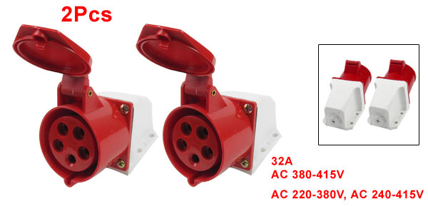 32A 4P+E IEC309-2 AC 220-380V Industrial Panel Mount Socket Connector Red White