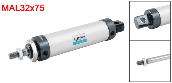 Product Name Air Cylinder Model MAL32x75 Rod Type Single Rod Action Type Double Acting Fluid Air Bore 32mm /58/64" Stroke 75mm / 2 15/16" Port Diameter 8.56mm/1/8'' Screwed Rod Dia 9.73mm/1/8'' Threaded Flat End Dia. 15.6mm/0.61'' Max. Pressure 1MPa Total Size (Approx) 21 x 3.8cm/8.3'' x 1.5'' (L*Max. D) Main Material Aluminum Alloy Color As Picture Shown Weight 444g Package Content 1 x Air Cylinder - Reviews