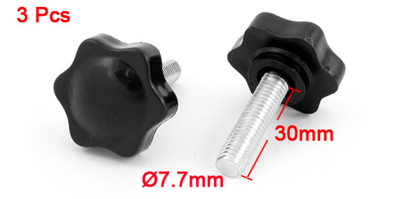 Product Name Clamping Knob Type Screw On Head Diameter 32mm / 1.3" Thread Length 30mm / 1.2" Thread Diameter 7.7mm / 0.3" Total Height 45mm / 1.8" Material Metal, Plastic Color Silver Tone, Black Weight 58g Package Content 3 x Clamping Knob - Reviews
