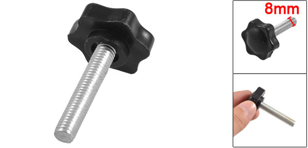 Product Name Clamping Knob Type Screw On Head Diameter 32mm / 1.26" Thread Length 40mm / 1.6" Thread Diameter 8mm / 0.31" Total Height 55mm / 2.2" Material Metal, Plastic Color Silver Tone, Black Weight 23g Package Content 1 x Clamping Knob - Reviews