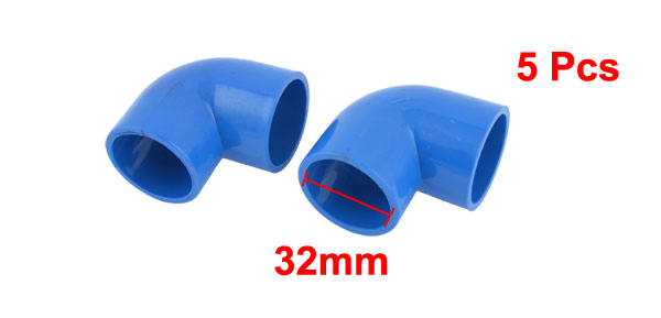 32mm Hole Blue U-PVC Elbow 2 Ways Pipe Connecting Connector Fittings 5 Pcs