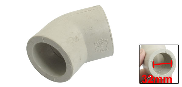 Product Name Pipe Connector Type 45 Degree Elbow Hole Inner Dia (Approx.) 32mm Overall Size (Approx.) 71 x 43mm/ 2.8" x 1.7" (L*D) Material PPR Color Gray Weight 38g Package Content 1 x Pipe Connectors - Reviews