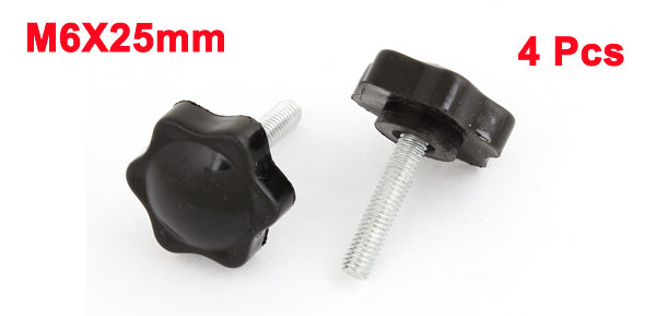32mm Star Head Dia Replacement 6mm x 25mm Clamping Screw Knob Grip 4 Pcs