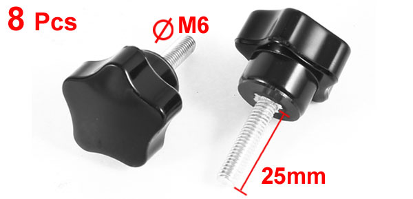 32mm Star Head Dia Replacement 6mm x 25mm Clamping Screw Knob Grip 8 Pcs