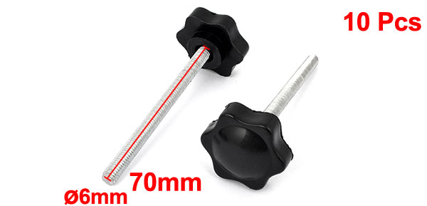 32mm Star Head Dia Replacement 6mm x 70mm Clamping Screw Knob Grip 10Pcs