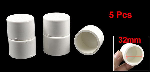 32mm White PVC Hose Tube End Fitting Adapter Caps 5 Pcs