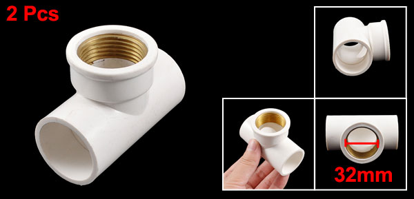 Product Name Tee Connector Design 3 Ways Ends Slip x Slip x Female Thread Slip End Dia. 32mm x 32mm /1.26" x 1.26" Female Thread Dia. 3/4" PT (26mm / 1.02") Overall Size (Approx.) 75 x 60 x 37mm / 3" x 2.4" X 1.5" (L*W*H) Material PVC, Brass Color White Net Weight 128g Package Content 2 Pcs x Tee Connector - Reviews