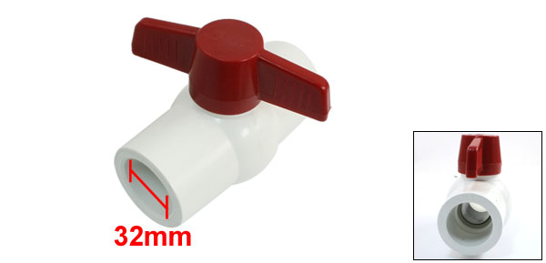 32mm x 32mm Slip Dual Ends Red Handle White PVC Pipe Connect Ball Valve