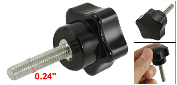 32mm x 6mm Male Thread Black Star Head Clamping Handle Knob