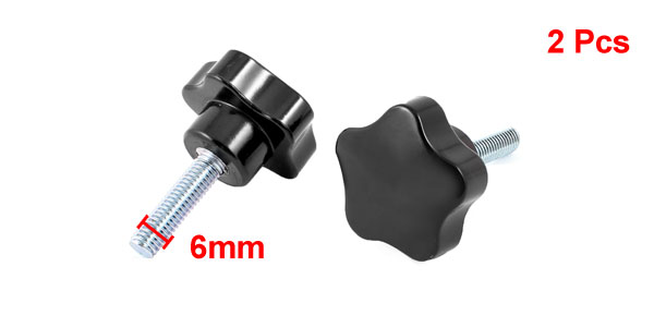 32mm x 6mm Male Thread Black Star Shape Head Clamping Knob 2pcs