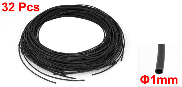 32pcs Black Polyolefin 1mm Dia 1M Long 2:1 Heat Shrinking Shrinkable Tube Tubing