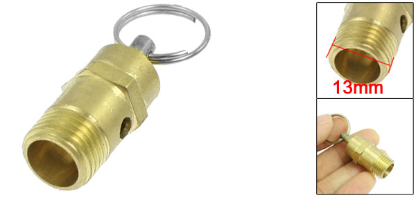 Product Name Pressure Relief Valve Thread Size PT 3/8" Thread Diameter 13mm Overall Size 35 x 15mm/ 1.4" x 0.59" (L*D) Material Brass Color Gold Tone Weight 17g Package Content 1 x Pressure Relief Valve - Reviews