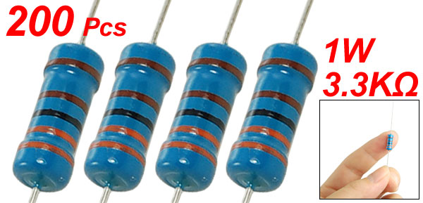 Product Name Metal Film Resistor Quantity 200±2% Pcs Rated Power 1W Tolerance ± 1% Resistance Value 3.3KΩ T.C.R(Temperature Coefficient) ±50ppm/°C Body Size 4 x 11mm/ 0.16" x 0.43" (D*L) Leads Dia (Approx.) 0.5mm/ 0.02" Total Length (Approx.) 60mm/ 2.8" Color As Picture Shown Net Weight 108g Package Content 200 Pcs x Metal Film Resistors - Reviews