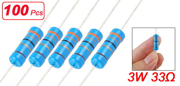 33 Ohm 3W 1% Through Hole Metal Film Resistors 100 Pcs