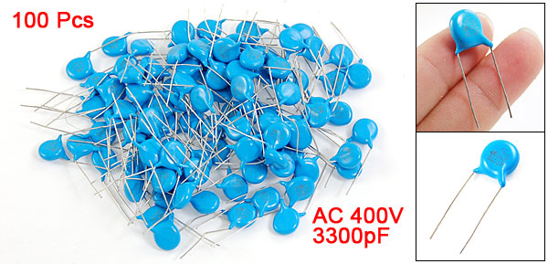 Product Name Safety Ceramic Capacitors Rated Voltage AC 400V Series Y1 Capacitance 3300pF Capacitance Tolerance ±20% Lead Spacing 10mm Quantity 100 ± 2% (Pcs) Body Dimension 1.3 x 1 x 0.4cm / 0.5" x 0.4" x 0.16"(L*W*T) Net Weight 123g Color Blue Package Content 100 Pcs x Safety Ceramic Capacitors - Reviews