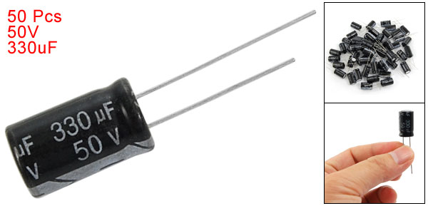 Product Name Aluminum Electrolytic Capacitor Type Radial Lead Maximum Temperature 105 Degree Voltage 50V Capacitance 330uF Capacitance Tolerance +/-20% Size 10 x 17mm / 0.39" x 0.67" (D*L) Lead Spacing 5mm Lead Length 21mm, 27mm External Material Aluminum Weight 110g Color As Picture Shown Package Content 50 Pcs (+/-2%) x Electrolytic Capacitors - Reviews